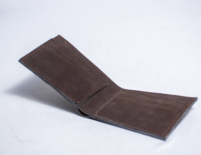 Elegant suede brown leather wallet handcrafted in Africa, featuring a sleek minimalist design and premium craftsmanship.