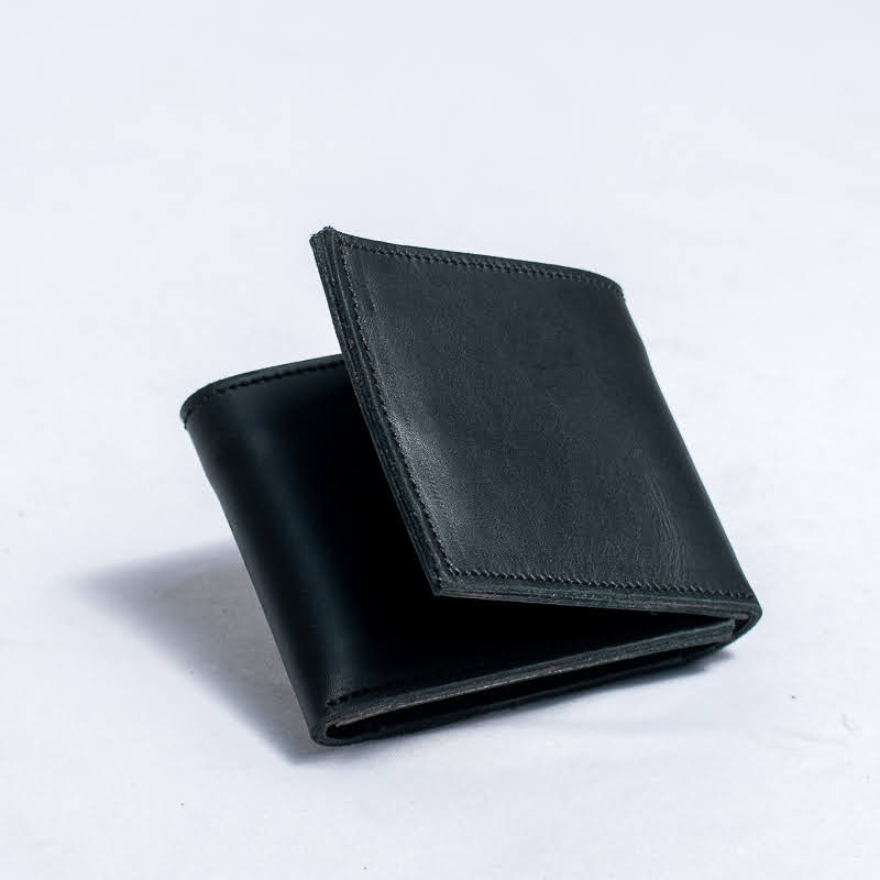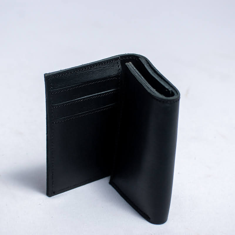 Handcrafted from durable black leather,this trifold wallet features multiple card slots,an oId window,and a compact fold design.Built for functionality,longevity,longevity and everyday elegance.