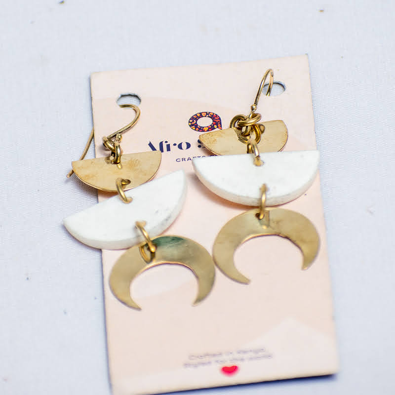 These handcrafted earrings are made using brass and well recycled bone to create a bold yet elegant statement.Lightweight and unique,they are perfect for everyday wear or special occasions.