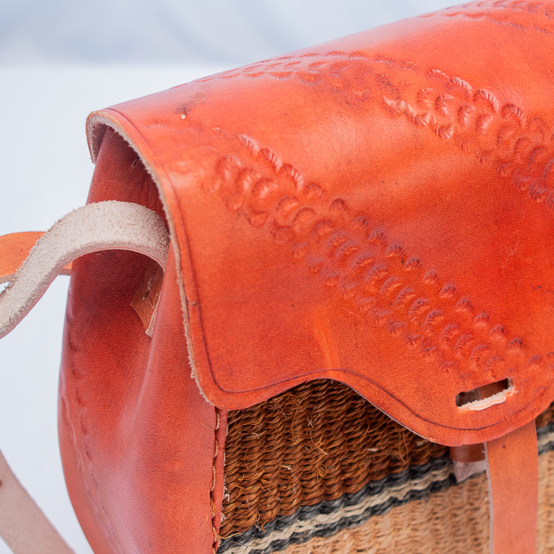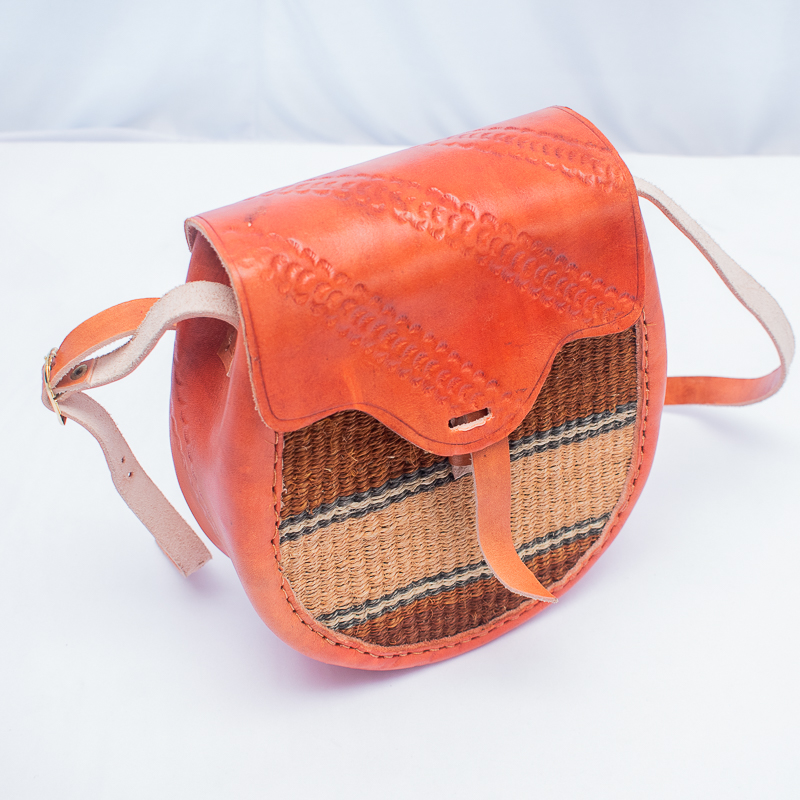 Handwoven sisal sling bag featuring elegant leather accents,adjustable strap. Perfect for everyday use and style.