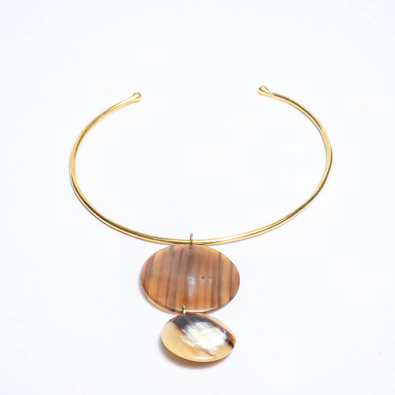 Handcrafted brass choker featuring natural bone details and an open-ended design.
